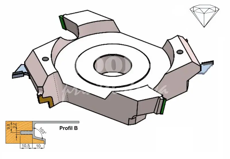 DIA fréza na AL úchytky - profil B; D166; B24; d30; Z2+2+2