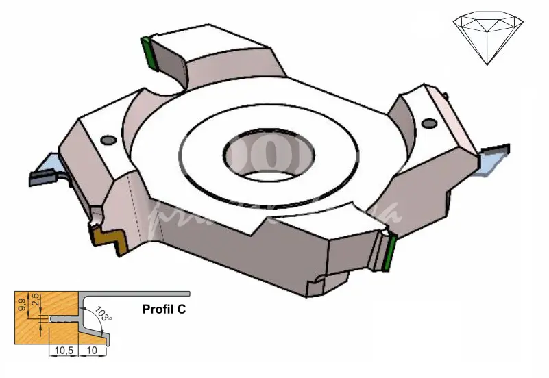 DIA fréza na AL úchytky - profil C; D166; B24; d30; Z2+2+2