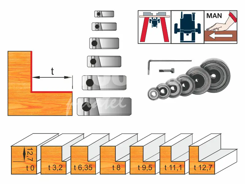 Falcovacia fréza so spodným ložiskom; D34,9; B12,7; L55,2; t11,1; stopka 8