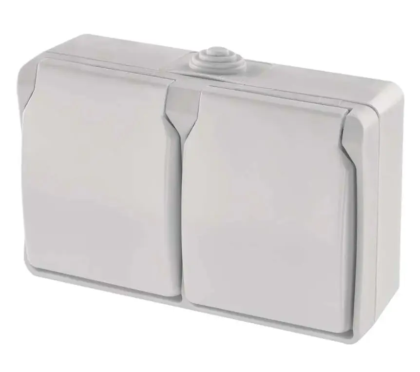 Vodeodolná zásuvka dvojnásobná s ochrannými kontaktmi a viečkami s prepojením Technické parametre farba biela spôsob montáže na stenu...