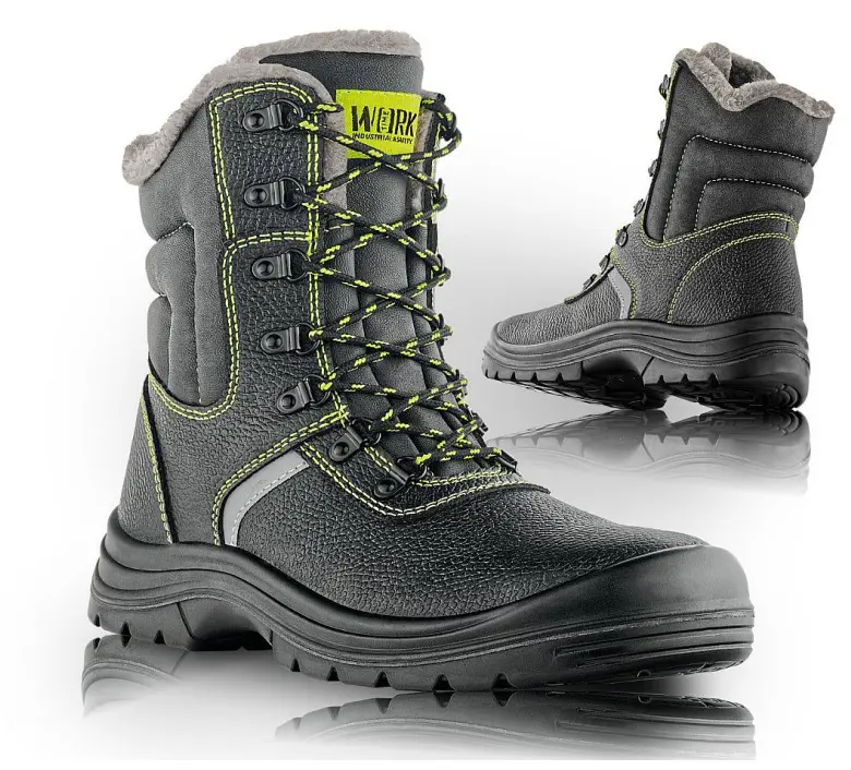 Bezpečnostná zateplená poloholeňová obuv VM - FALUN Zvršok: korigovaná hovädzinová useň s dezénom v hrúbke 1,6 – 1,8 mm...