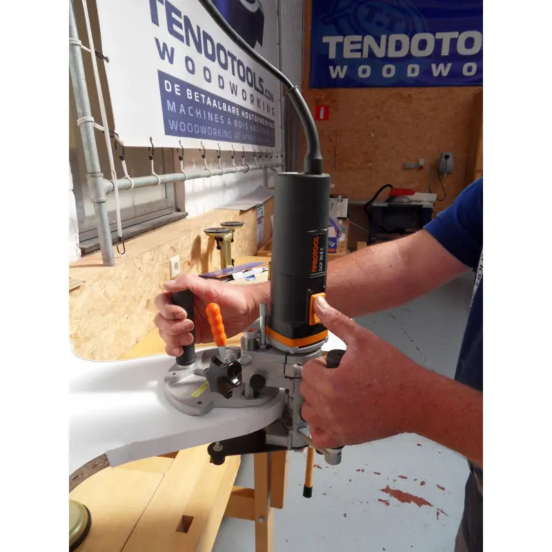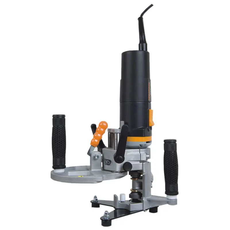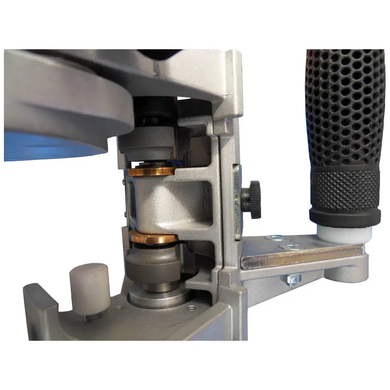 Prídavná rukoväť poskytuje lepší úchop a zvýšené pohodlie pri práci. Táto frézacia hlava je tiež nepostrádateľným doplnkom na frézovanie rohov. Pomocou dodaného pera môžete jednoducho vytvoriť oporu pre horizontálne umiestnenie stroja. Vďaka tejto páke môžete bez problémov frézovať vertikálne a zároveň pekne dokončiť aj rohy. Jedinečnou vlastnosťou tejto frézy je, že môžete frézovať hornú aj spodnú časť bez nutnosti otáčania panelu. Rezný nástroj si vyberiete hore alebo dole posunutím polohovacej páky.