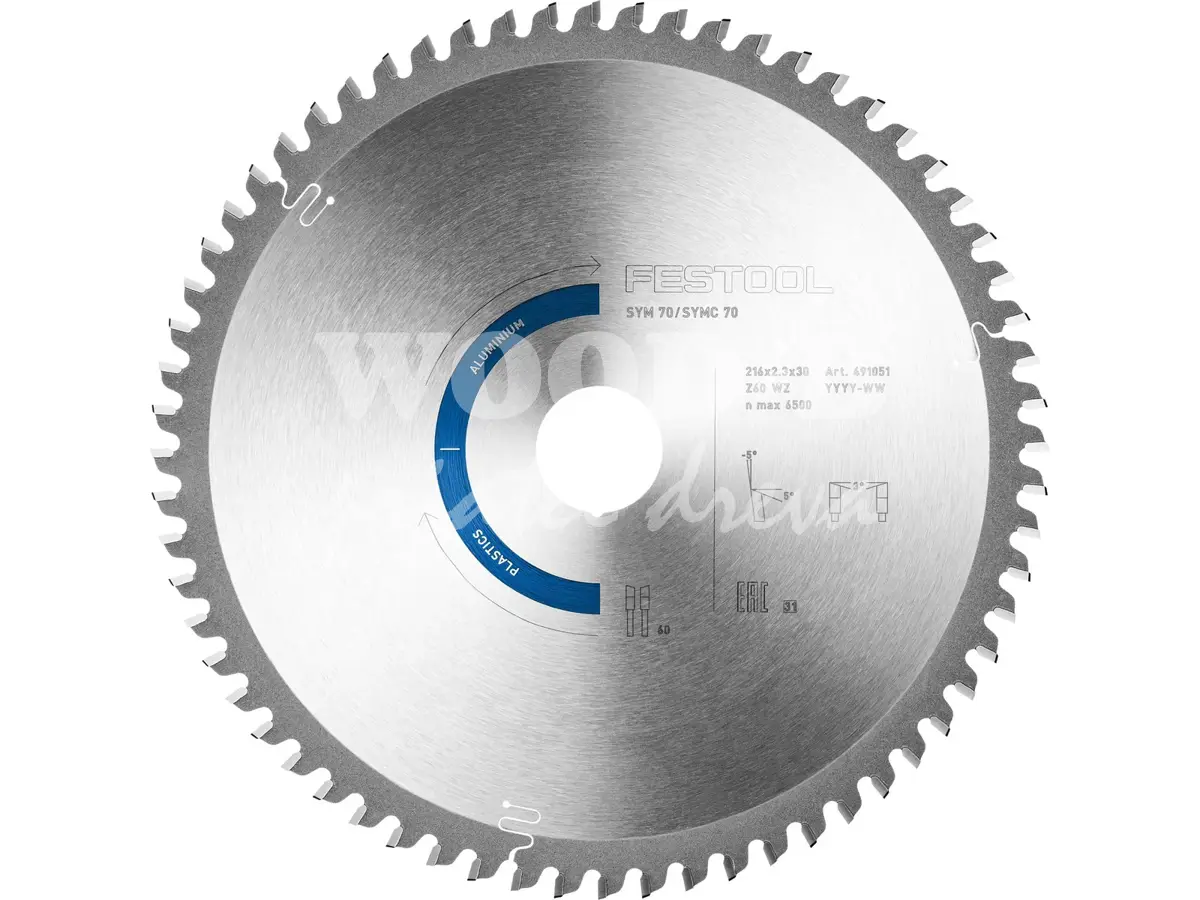 - Farebné kódovanie uľahčuje výber správneho pílového kotúča: modrá farba znamená hliník a tvrdé plasty