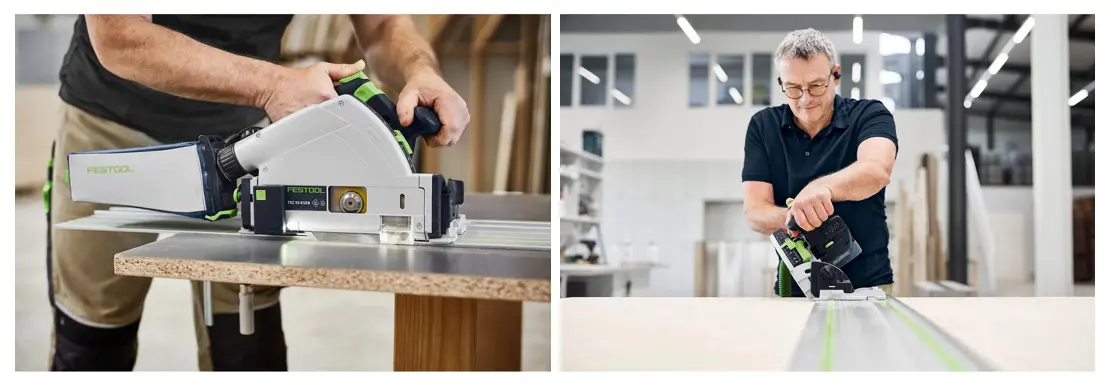 Od roku 1980 sa môžete spoľahnúť na spoľahlivú kvalitu a absolútnu presnosť ponorných píl Festool. Výsledok tejto skúsenosti? Nová generácia akumulátorovej ponornej píly – taká univerzálna, ako sú vaše výzvy, taká presná, ako ste zvyknutí. TSC 55 KS prináša plný výkon a maximálnu flexibilitu pri každodennej práci: s iba jedným akumulátorom je okamžite pripravená na použitie, perfektne padne do ruky a pomôže vám pri každej práci. Jej plný výkon pocítite najmä v kombinácii s výkonným 8,0 Ah akumulátorom. V kombinácii so zodpovedajúcimi 1,6 mm tenkými pílovými kotúčmi môžete využívať nielen vynikajúci rezný výkon, ale špeciálne skupinové ozubenie zabezpečuje aj mimoriadne čisté výsledky rezania. Senzorový systém KickbackStop vás spoľahlivo ochráni pred spätným rázom pri pílení alebo zanorení do obrobku, aby ste pri pílení nemuseli robiť kompromisy v oblasti bezpečnosti. Váš zážitok z pílenia doplní inteligentné systémové príslušenstvo: vodiace lišty, uhlové dorazy a stôl píly zabezpečujú presné výsledky aj pri náročných prácach – bez zdĺhavej prípravy alebo dodatočných prác.