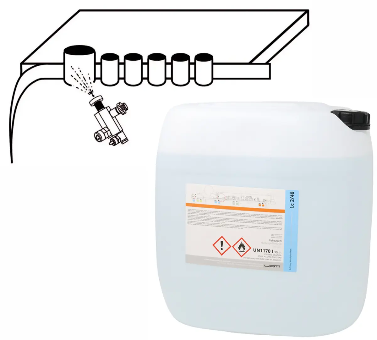 Ochranný nástrek Lc 2/40 sa používa proti usadzovaniu lepidla v rohoch, na prítlačných valcoch a hranách s vysokým leskom, zabraňuje nežiaducemu a rušivému znečisteniu pracovného procesu a zároveň zabraňuje usadzovaniu nových nečistôt. Ochranná fólia sa počas spracovania v stroji neodlepí od okraja.