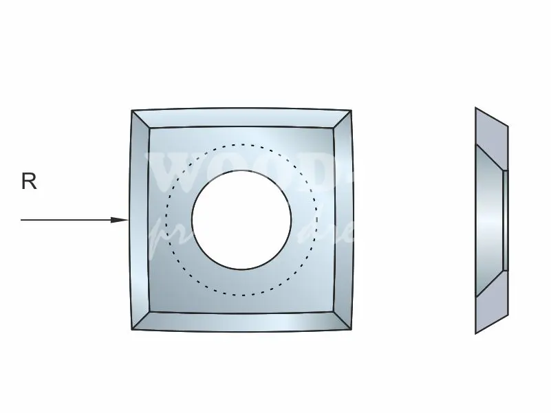 Rádiusová štvorcová žiletka pre špirálové hobľovacie hlavy; HW; 15x15x2,5; R100; masív