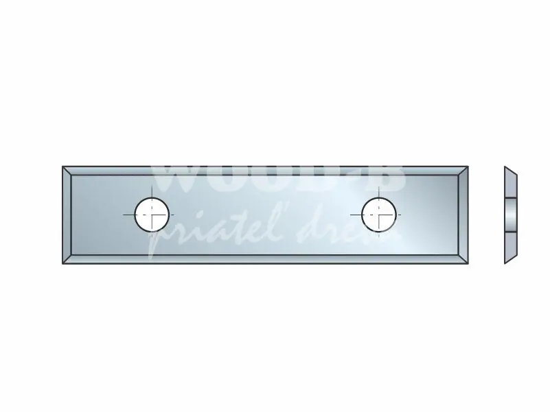 Obdĺžniková žiletka - štvorstranne brúsená, s dvoma otvormi; HW; 29,5x9x1,5; MDF, DTD