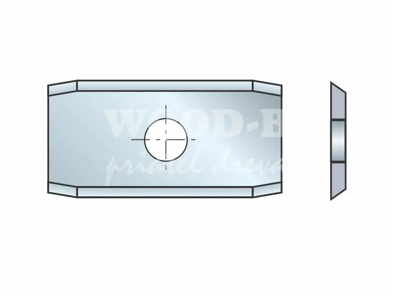 Obdĺžniková žiletka pre špirálové hobľovacie hlavy-zrazená; HW; 20x12x1,5; jeden otvor; masív