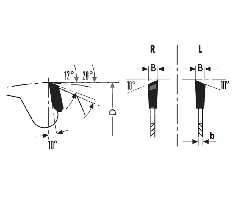 Kapovacia kotúčová píla HW, určená pre olepovačky koncových rezných hrán. Jednostranné ozubenie so sklonom na 1 strane. R= rezanie vpravo L=...