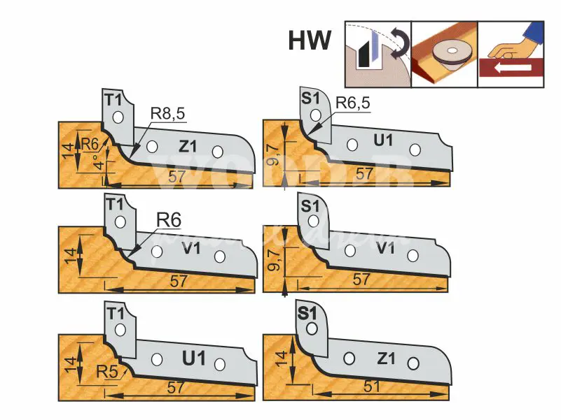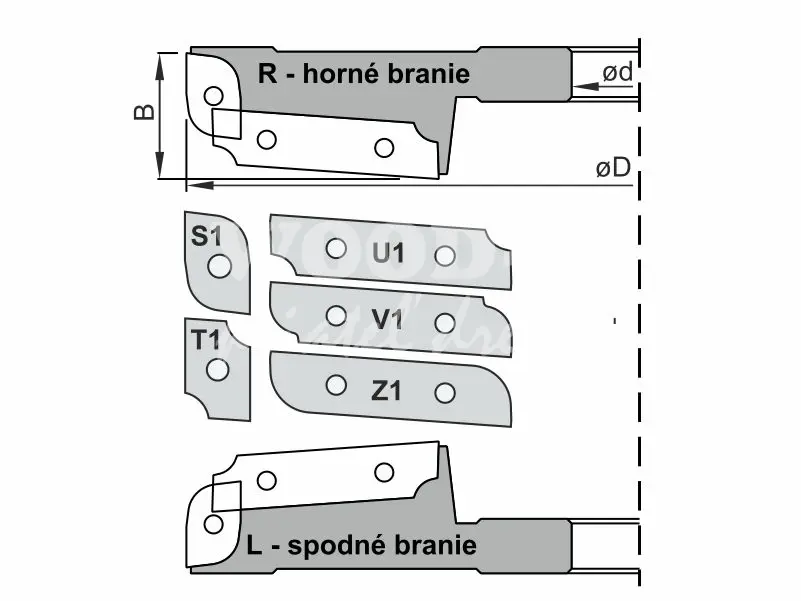 R - horné branie - Oceľový nosič osaditeľný ľubovoľnými dlhými profilovými nožmi U, V, Z ako aji krátkymi profilovými nožmi S, T. Je...